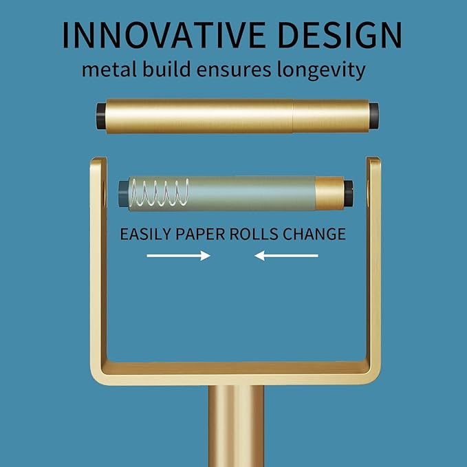 YUMORE Toilet Paper Holder Free Standing, Stainless Steel Toilet Paper Stand, Weighted Base Floor Tissue Roll Holder for Bathroom,Gold 200UP