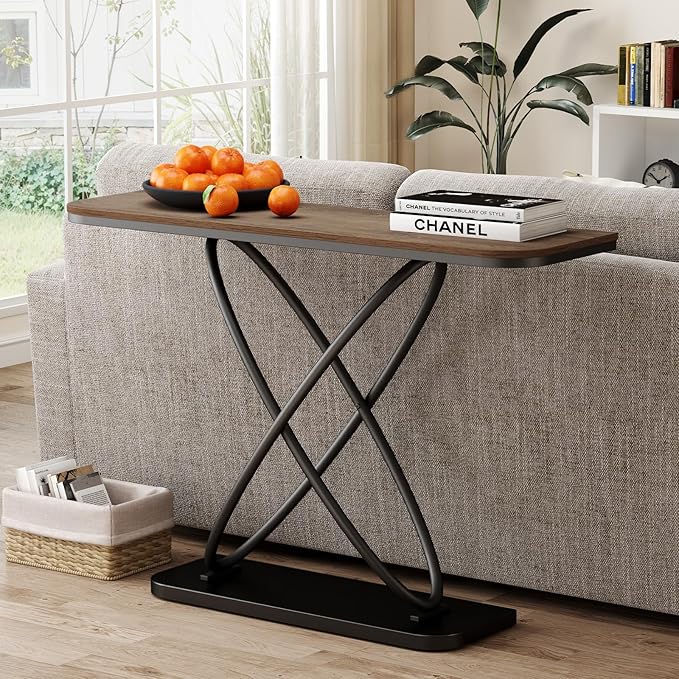 - 【Modern Industrial Style】- Featuring a rustic wood-grain tabletop paired with a matte black metal frame, this industrial console table boasts a unique double-oval cross-leg design with clean, simple lines. Its modern industrial aesthetic makes it a striking focal point in your home