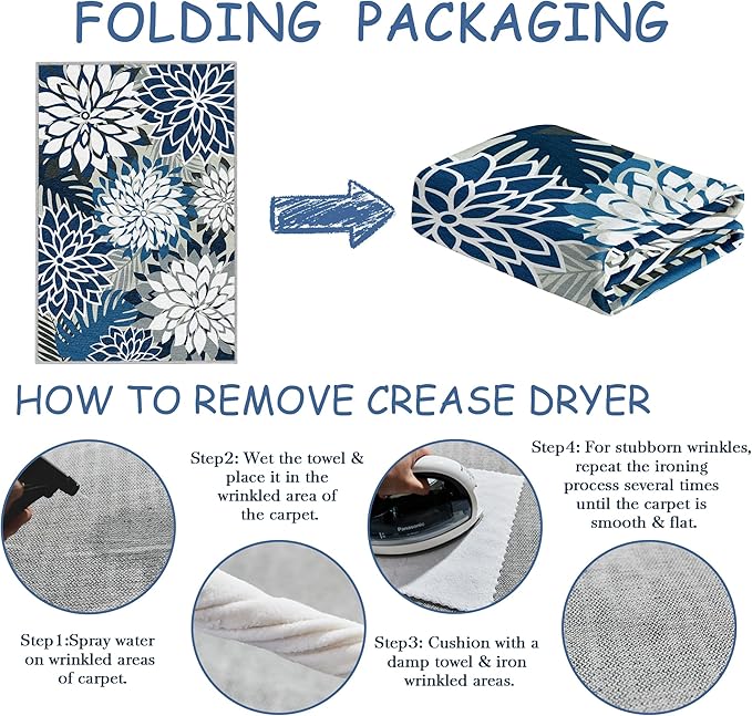 - Tips: Folded rugs may have creases when they arrive. Roll out the rug and allow time to flatten and settle.When vacuum, use soft roller cleaner head/ dusting brush only and vacuum on the lowest setting. Machine wash gently in cold water and never bleach.