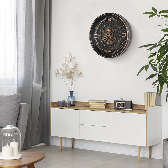 - Effortless Installation & Battery Operation: Ready to hang right out of the box! Simply use the integrated keyhole hanger. Requires 3 AA batteries: 1 for the clock movement, 2 dedicated to powering the mesmerizing gear motion. (Batteries Not Included).
