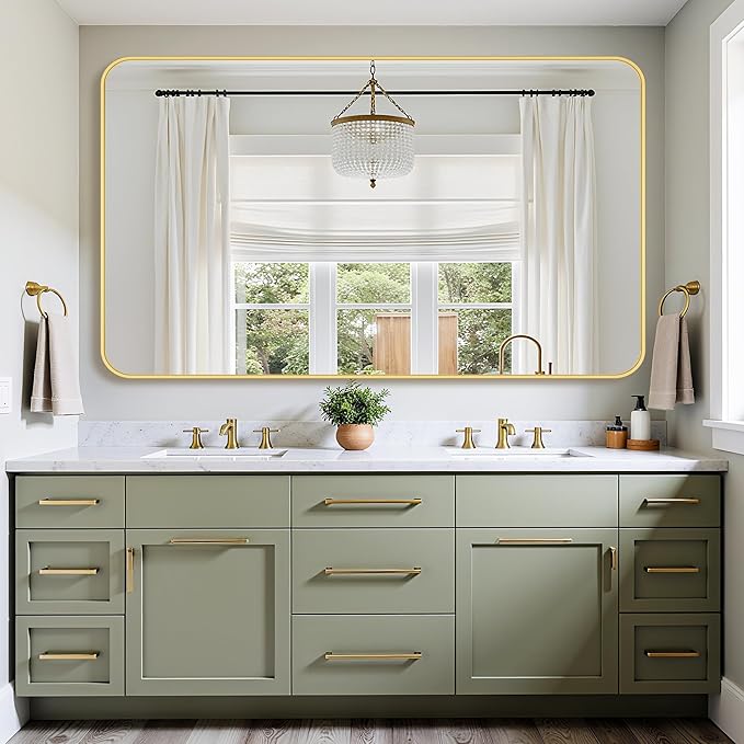 Bathroom Mirror 60" x 36", Large Rectangle Wall Mirror, Gold Metal Frame Wall Mounted Mirrors for Bathroom, Vanity, Bedroom, Entryway Decor(Horizontal/Vertical)
