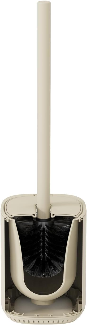 Toilet Brush and Holder Set Toilet Bowl Brush Stainless Steel Automatic Toilet Bowl Cleaner Brush with Durable Bristle Head Toilet Cleaning Brush for Bathroom 2 Pack Set Cream