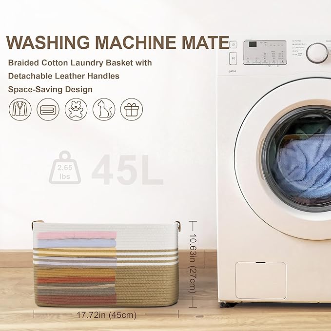 - HOUSEHOLD STORAGE SOLUTION: 45L oversized basket. The extra large basket can hold the entire family's daily laundry and can be used as a toy storage basket, a baby laundry basket, a nursery laundry basket, a blanket/throw storage for living room or a towel basket for bathroom
