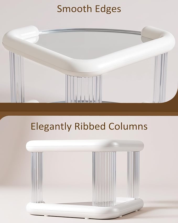 - Bathroom Corner Organizer: This space saving countertop organizer is designed to fit snugly into any corner, making it ideal for small spaces (10.4" x 10.4" x 7.5"). Use the tiers stacked or separately as a perfume organizer, skincare organizer, vanity organizer, make up organizers, kitchen countertop organizer