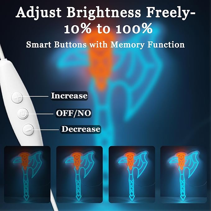 - USB POWER + DIMMER CONTROL: Plug into adapter, power bank, or PC and fine-tune brightness from soft ambience to party mode; doubles as an axe neon desk lamp light box for desktops or shelves without harsh glare