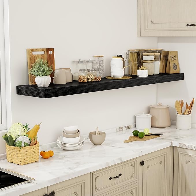 - [GENEROUS DISPLAY & STORAGE] With an expansive 12-inch depth, these floating shelves offer abundant room for books, kitchen essentials, decorative accents, and more. The extra-wide surface accommodates larger items like potted plants, baskets, or framed art, while the 2-inch thick design ensures sturdy support. Perfect for organizing and showcasing your favorite pieces without compromising on style or functionality.