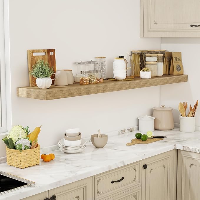 - [GENEROUS DISPLAY & STORAGE] With an expansive 12-inch depth, these floating shelves offer abundant room for books, kitchen essentials, decorative accents, and more. The extra-wide surface accommodates larger items like potted plants, baskets, or framed art, while the 2-inch thick design ensures sturdy support. Perfect for organizing and showcasing your favorite pieces without compromising on style or functionality.