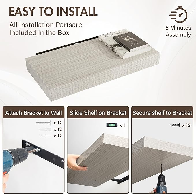 - [EFFORTLESS INSTALLATION] Each set comes with all necessary hardware and a clear, step-by-step guide for quick mounting. Transform your walls in minutes—no special tools required. Whether you're a DIY beginner or a seasoned decorator, these shelves make upgrading your space simple and hassle-free.