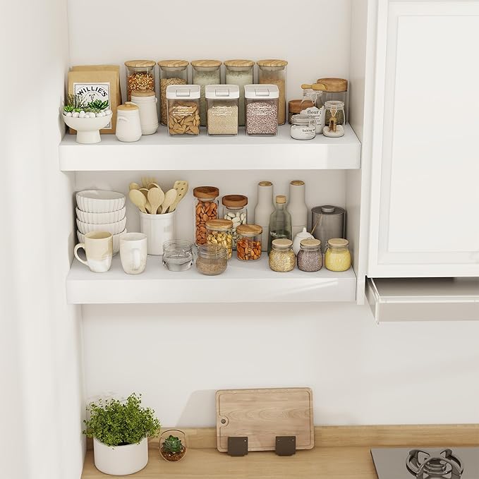 - [SPACE-SAVING WALL SOLUTION] Ideal for maximizing small rooms, kitchens, or cozy apartments, these shelves create storage without cluttering floors. Their floating design opens up living areas, making spaces feel airy and well-organized. Use them in entryways, bathrooms, or home offices to keep daily essentials neatly displayed yet within easy reach.