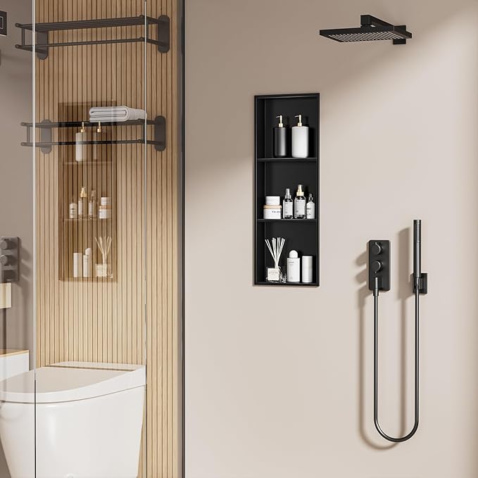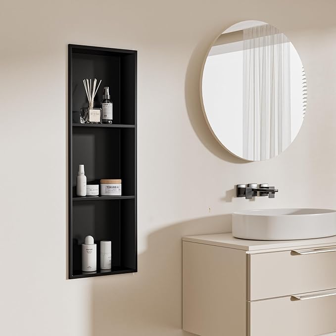 - 【Premium 304 Stainless Steel】 Crafted with rust-resistant 304 stainless steel and a matte black powder-coated finish, this niche offers 2x enhanced corrosion resistance vs. standard metals. Fully sealed welding prevents moisture seepage, and the smooth surface wipes clean effortlessly.
