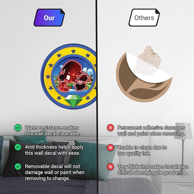 Speed Hero Wall Decal – Removable Vinyl Wall Art with Chaos Emerald Design – Gaming Room, Bedroom & Playroom Decor (Power Hero)
