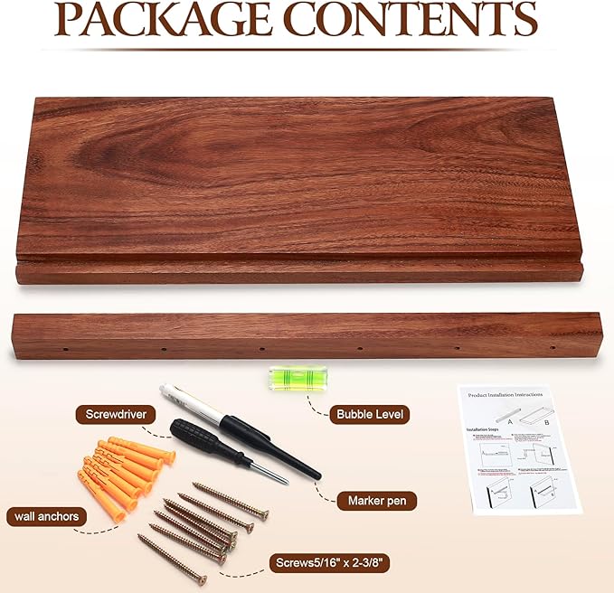 - Handcrafted Color Variations - Embrace Nature:Each shelf showcases unique grain patterns (Natural Walnut Brown/Black Stain). Slight color differences are proofs of authenticity - not defects. Minimalist design fits farmhouse/Scandi styles.