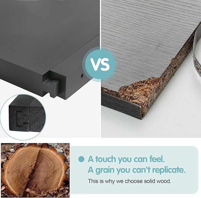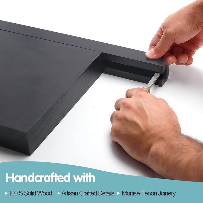 - Load-Optimized Joinery - 40lb (24") & 30lb (16"):Mortise-tenon joints reinforced by depth: 24" shelves bear heavy cookbooks (40lb), 16" holds toiletries/decor (30lb). Outperforms metal brackets in humid areas