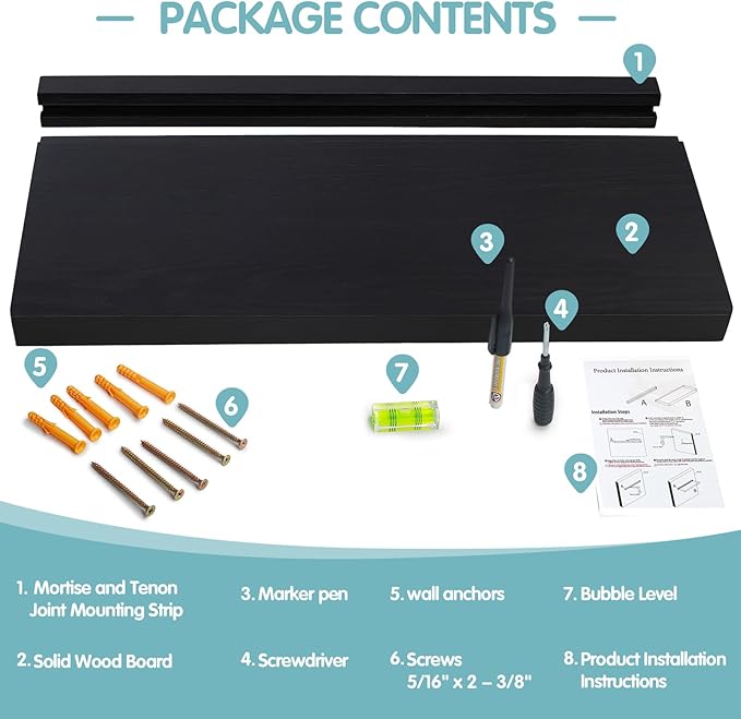 - Handcrafted Color Variations - Embrace Nature:Each shelf showcases unique grain patterns (Natural Walnut Brown/Black Stain). Slight color differences are proofs of authenticity - not defects. Minimalist design fits farmhouse/Scandi styles.