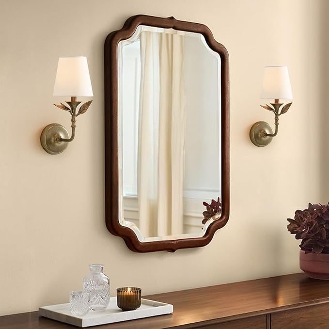 24x36 inch Rattan Rectangular Mirror for Wall, Bohemia Bathroom/Farmhouse Boho Mirrors, Vanity Irragular Decorative Mirror, Suitable for, Nursery, Bedroom, Living Room, Home Decoration