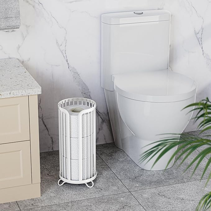 - FUNCTIONAL STORAGE: Never be without toilet paper again! This freestanding toilet paper holder features instant storage for 3 extra Mega rolls. Open-top ensures a quick and easy grab of reserve rolls.Perfect storage solution for your bathroom or lavatory