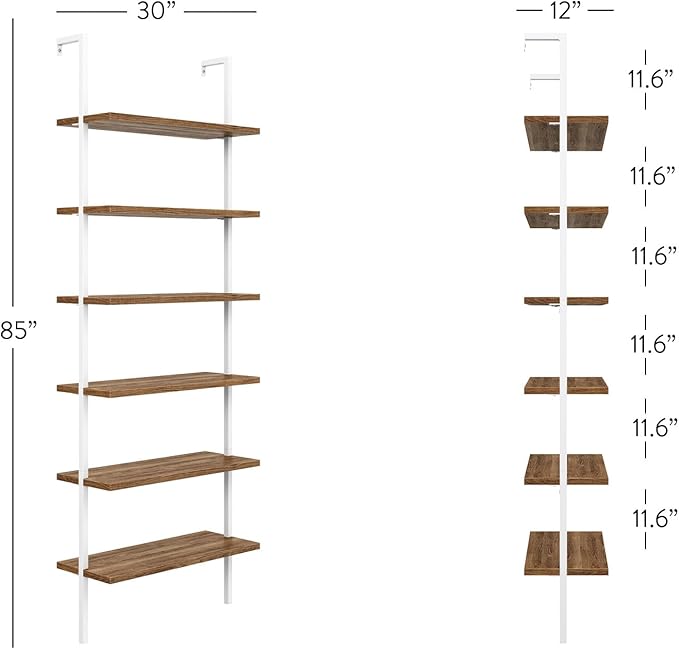 - This 6-tier tall, modern wall mount bookcase or shelving dresses up any space with its industrial style of wood and metal.