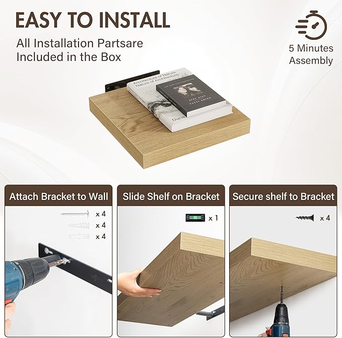 - [EFFORTLESS INSTALLATION] Each set comes with all necessary hardware and a clear, step-by-step guide for quick mounting. Transform your walls in minutes—no special tools required. Whether you're a DIY beginner or a seasoned decorator, these shelves make upgrading your space simple and hassle-free.